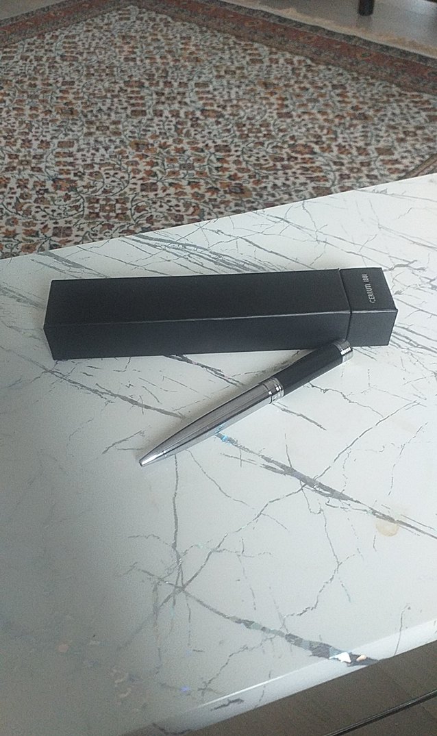 Şık tasarımlı siyah metal tükenmez kalem, uyumlu siyah kutusunda. Akıcı yazım sağlar. ️