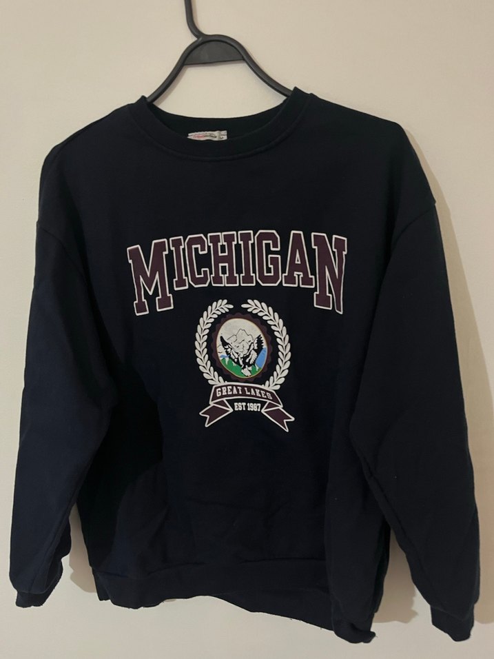 Siyah Michigan Baskılı Kadın Sweatshirt