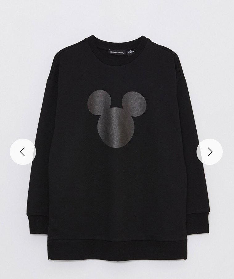 Siyah, uzun kollu ve yuvarlak yaka sweatshirt. Mickey baskılı, yumuşak ve sıcak kumaştan, rahat kesim ve normal boyda.