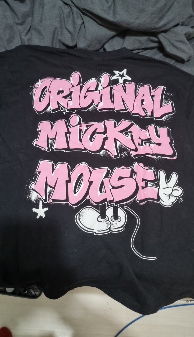 Siyah renkli, pamuklu kumaştan yapılmış, bol kesim kısa kollu tişört. Mickey Mouse baskısı ile trend bir görünüm sunar.