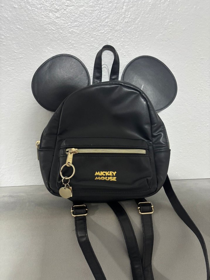 Kemer tokalı, baskılı Mickey Mouse deseniyle siyah deri sırt çantası. Minimalist sokak stili ve rock punk havası taşır. Günlük kullanım için uygundur.