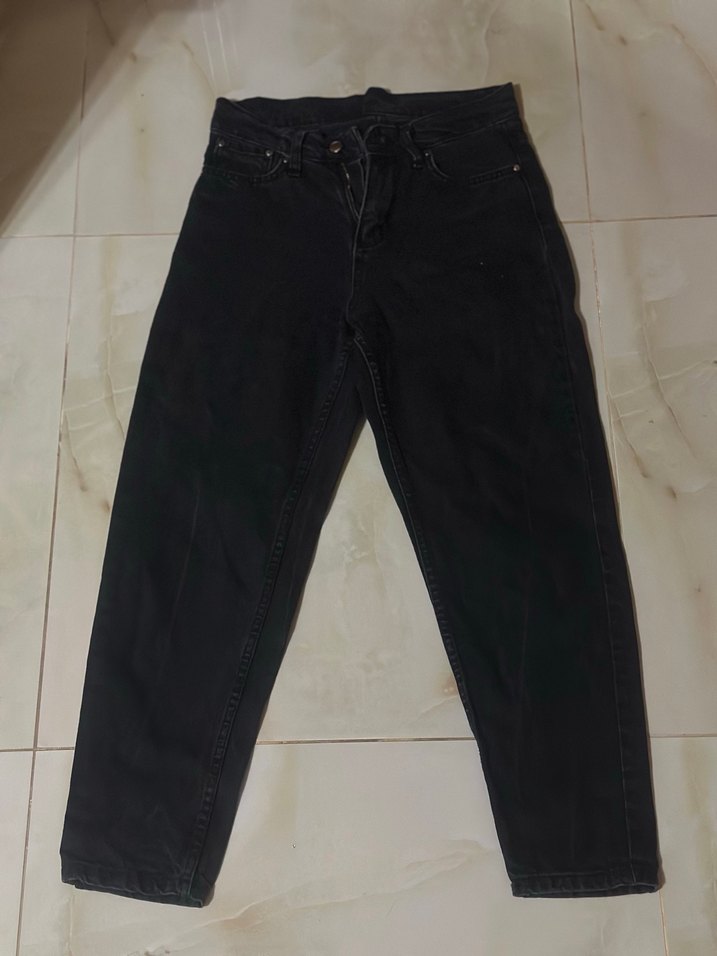 Siyah, midi boy, regular fit, desen içermeyen denim kot pantolon. Sokak stiline uygun, rahat ve şık bir günlük kullanım ürünü.