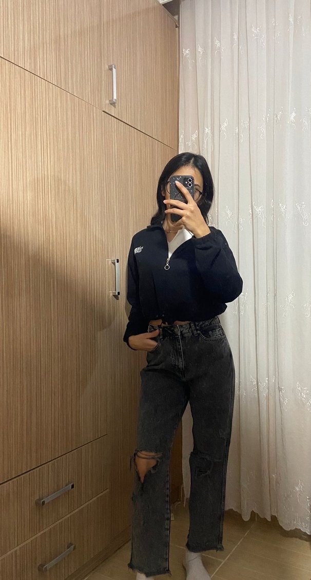 Siyah Midi Boy Bol Kesim Denim Kadın Jean