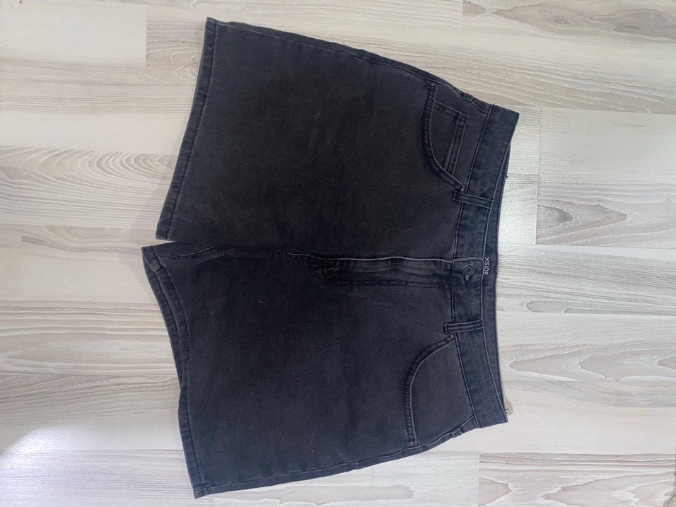 Siyah midi boy, bol kesim kot şort, günlük rahat kullanıma uygun, minimalist sokak stili için şık ve sade tasarım.