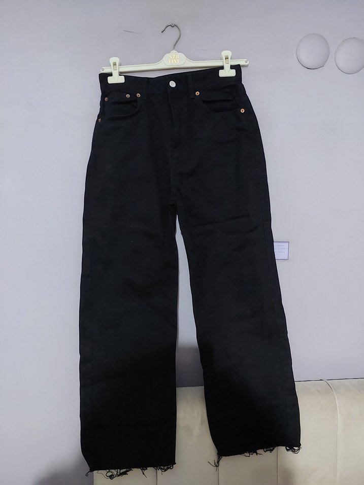 Kadınlar için siyah midi boy, regular fit denim pantolon. Günlük ve sokak stiline uygun, desensiz ve zahmetsiz şıklık sunar. Arka cebinde ufak bir defo var son fotoğrafa ekledim.