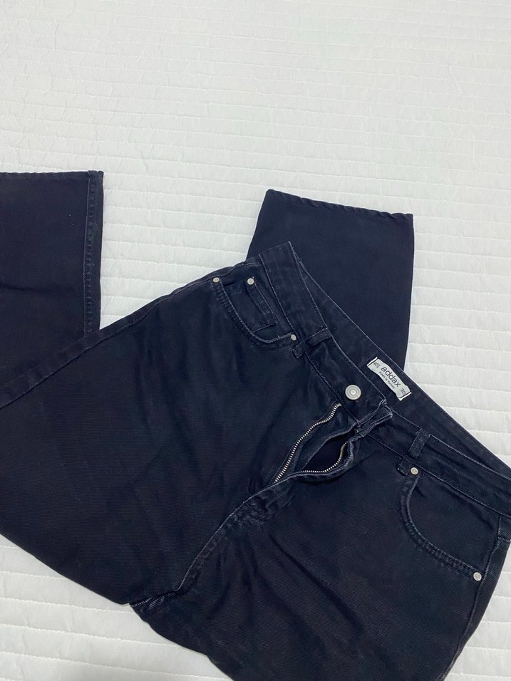 Siyah midi boy, regular fit denim pantolon. Desensiz ve gündelik kullanıma uygun, rahat bir tarz sunar.