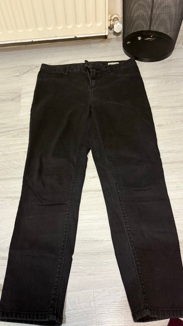 Siyah midi boy kadın kot pantolon, rahat kesimi ve desensiz tasarımıyla günlük kullanıma uygundur. Trendy ve zahmetsiz şıklık sunar.