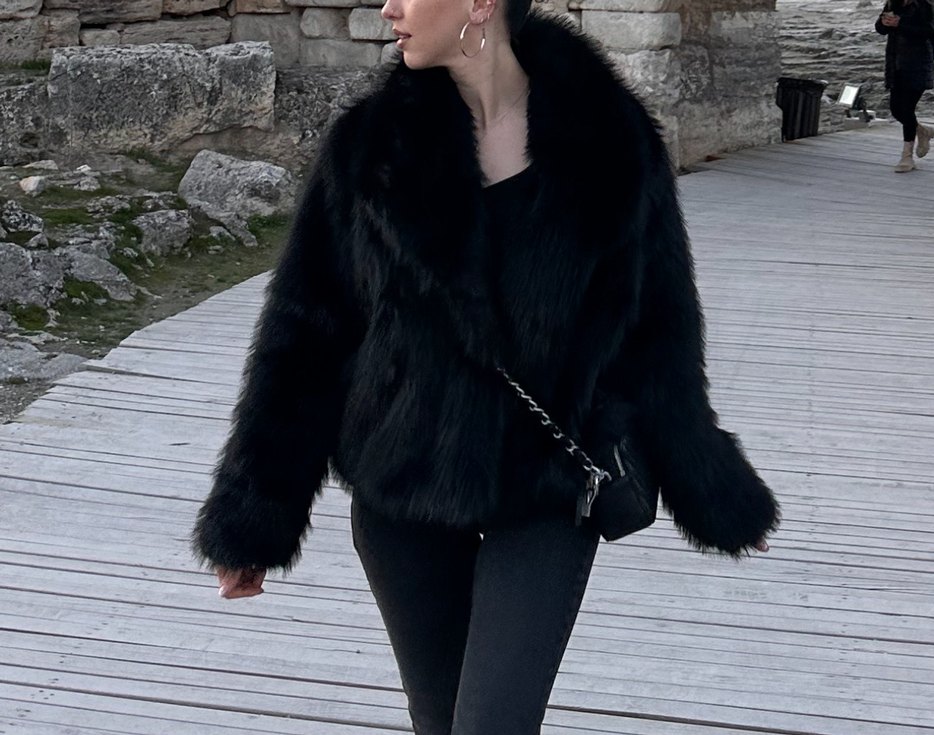 Siyah, Midi Boy, Kürklü Kadın Mont