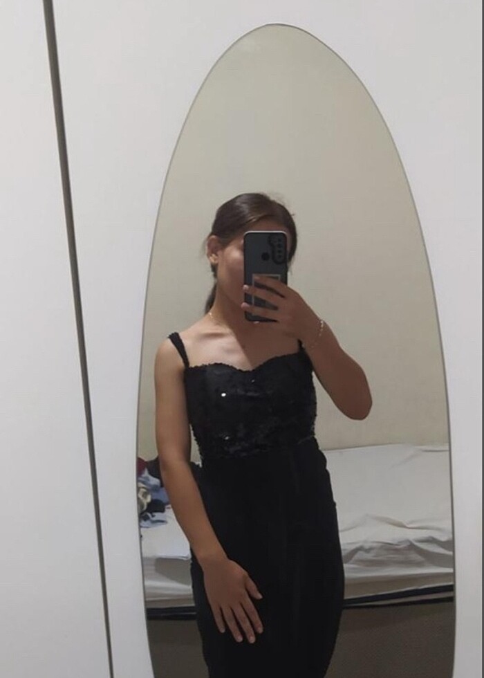 Siyah midi boy pul detaylı abiye