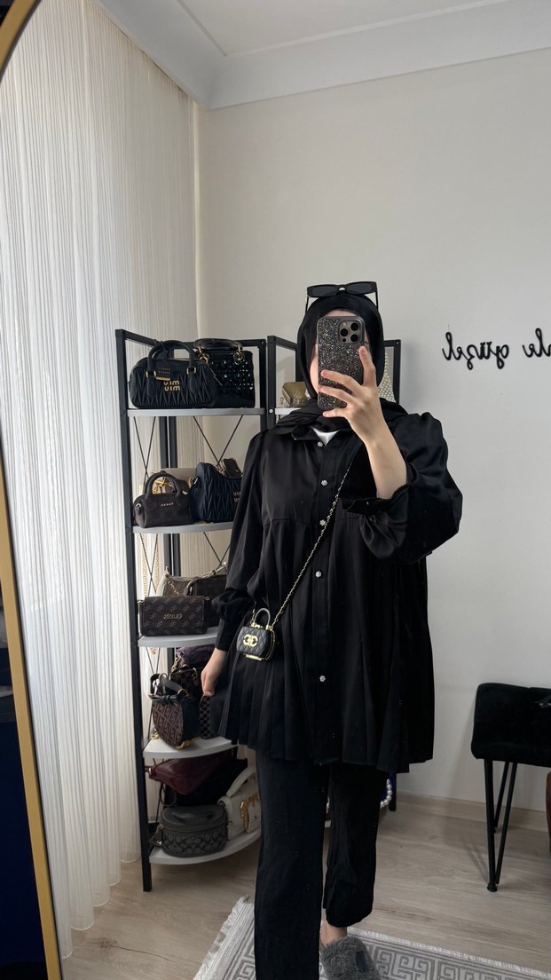 Siyah midi boy, rahat kesim kadın yağmurluğu yüksek yakalı ve uzun kolludur. Düz, sentetik kumaştan yapılmış, gündelik sokak stiline uygun şık bir tasarımdır. ️