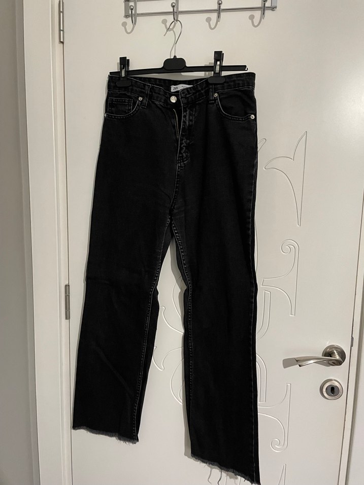 Siyah midi boy, regular fit kadın kot pantolon. Desensiz, günlük kullanıma uygun, rahat ve şık bir sokak stili sunar.