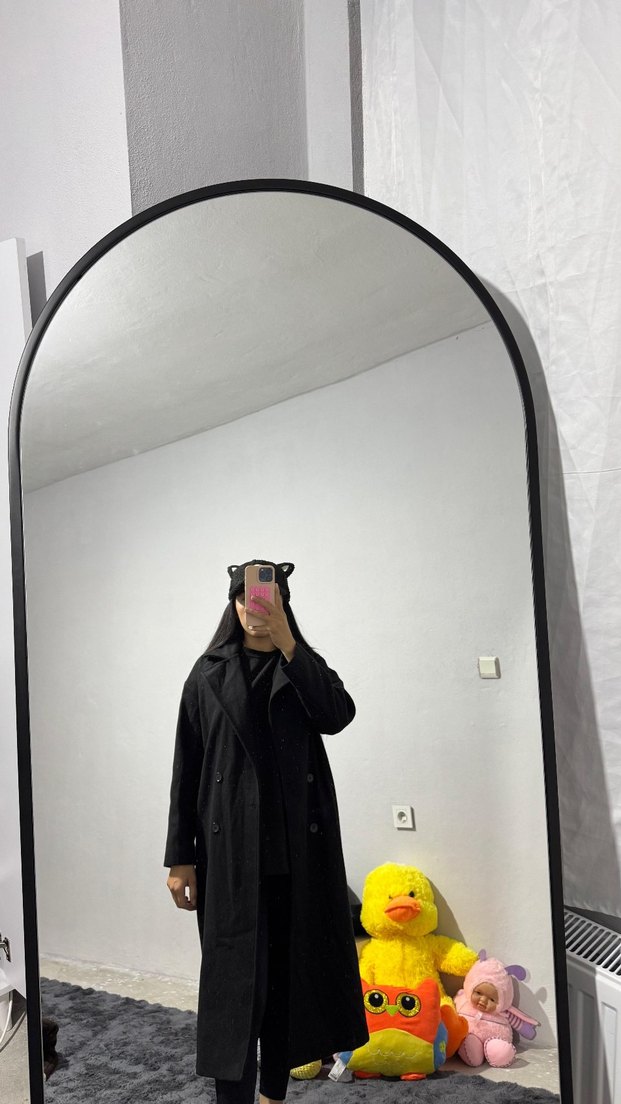 Siyah Midi Boy Salaş Kadın Kaban