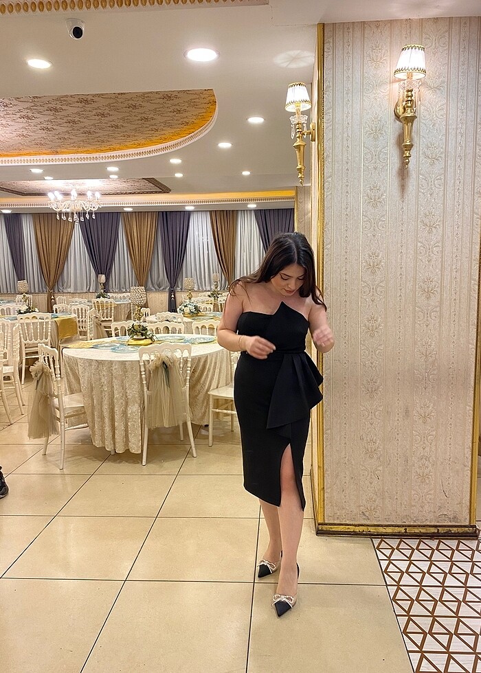 Siyah MIDI boy straplez elbise
