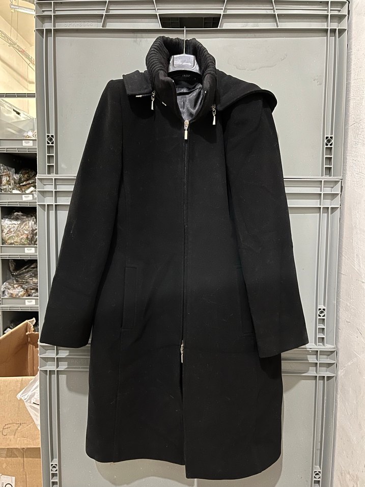 Siyah midi boy kadın kaban, yüksek yakalı ve fermuarlı ön tasarıma sahiptir. Uzun kollu, düz ve rahat kesimdir, yumuşak ve sıcak kumaştan üretilmiştir. Günlük kullanıma uygundur.