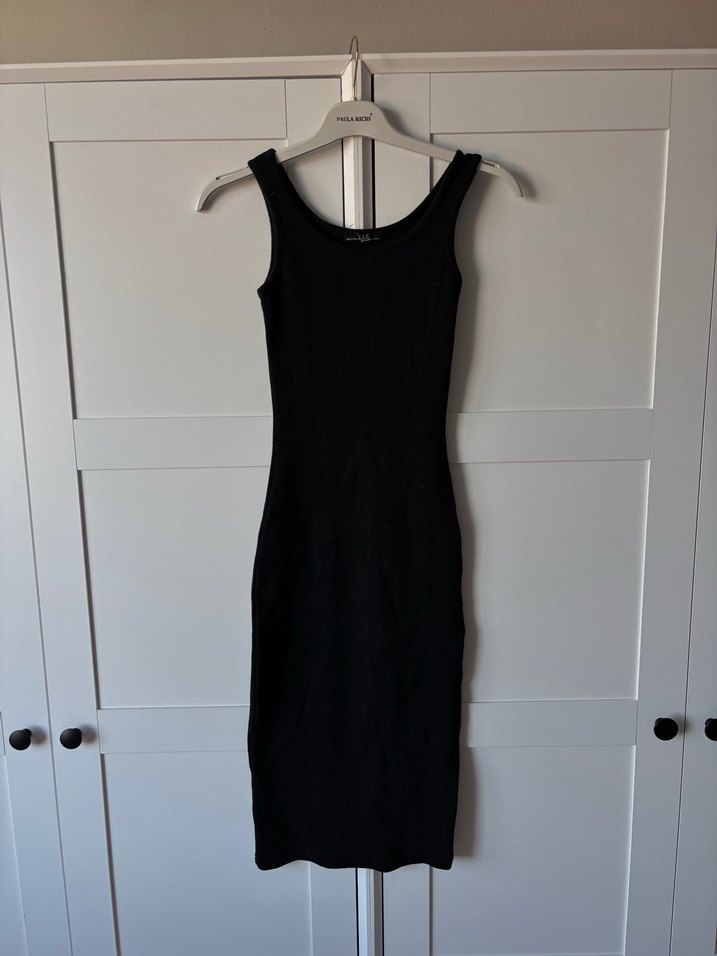 Triko, vücudu saran fitilli kumaş .Siyah, kolsuz ve yuvarlak yakalı bu midi elbise, gotik tarzıyla romantik akşamlar için şık ve trend görünüme sahiptir.