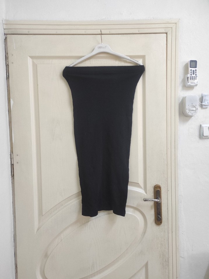 Siyah midi uzunlukta, dar kesim kenardan yırtmaçlı kadın eteği. Düz, sentetik kumaştan yapılmış, minimal ve şık bir görünüm sunar. Günlük sokak stiline uygundur. boy 83 cm. bel 31 cm.