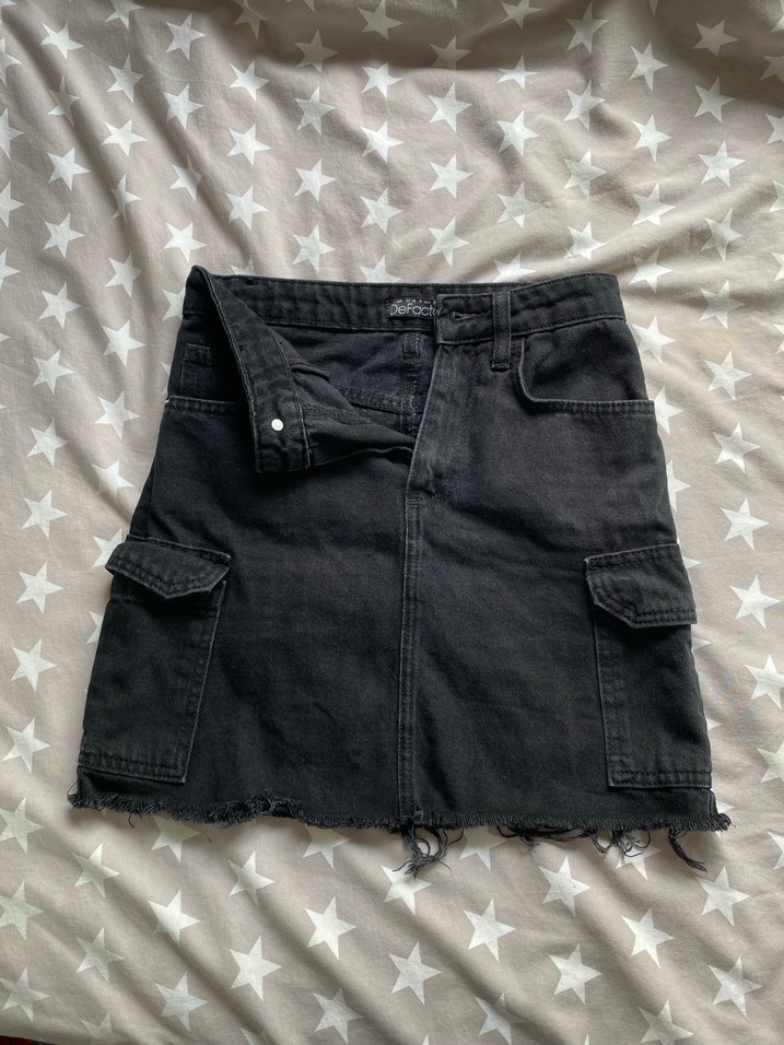 Siyah renkte, yan cepli midi kot etek. Günlük kullanıma uygun, sade ve kesik etek ucu detaylı. Çok az kullanıldı