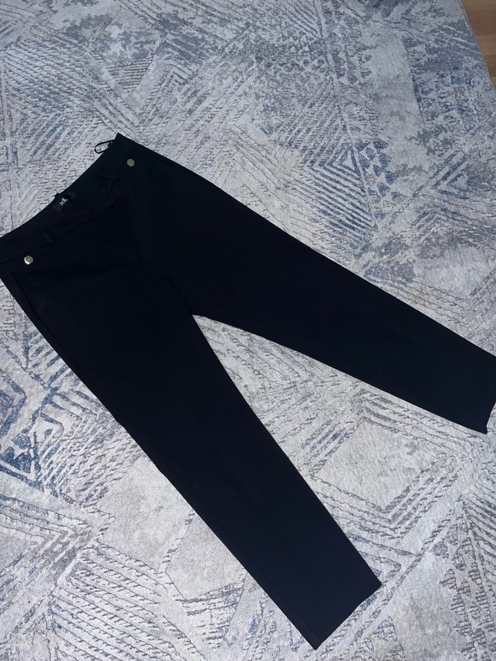 Kadınlar için siyah denim pantolon, normal kesim ve midi boyda, minimalist ve zahmetsiz şıklık sunan günlük kullanıma uygun. temiz üründür bedeni olmamasi sebebi ile satista