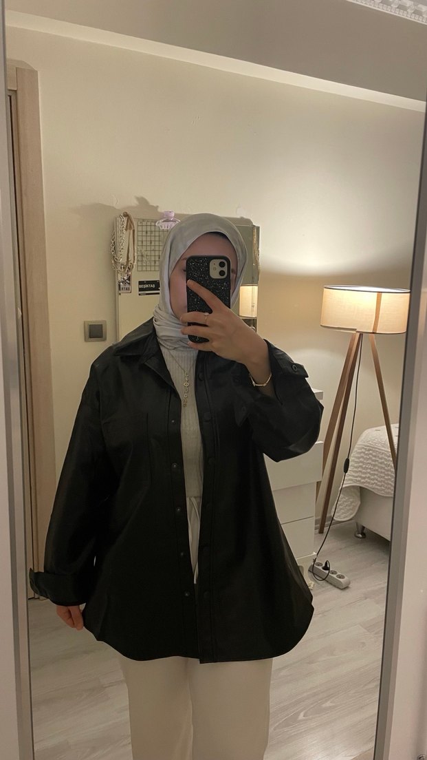 Siyah midi uzunlukta, yüksek yakalı ve uzun kollu deri kadın yağmurluğu, bol kesimiyle rahat ve sade bir sokak stili sunar. Günlük kullanım için şık ve kullanışlıdır. ️