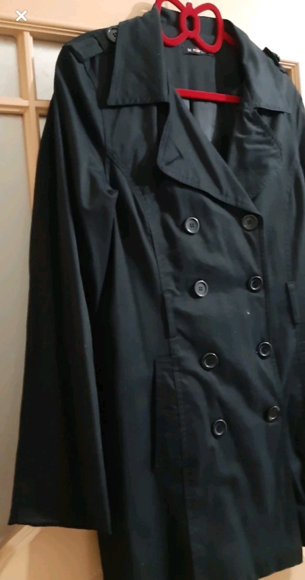 Siyah midi uzunlukta, düğmeli ve kesimli yaka detaylı kadın trençkot. Sentetik kumaştan, uzun kollu ve regular fit yapıda, günlük iş stilinde goth tarzını yansıtır.