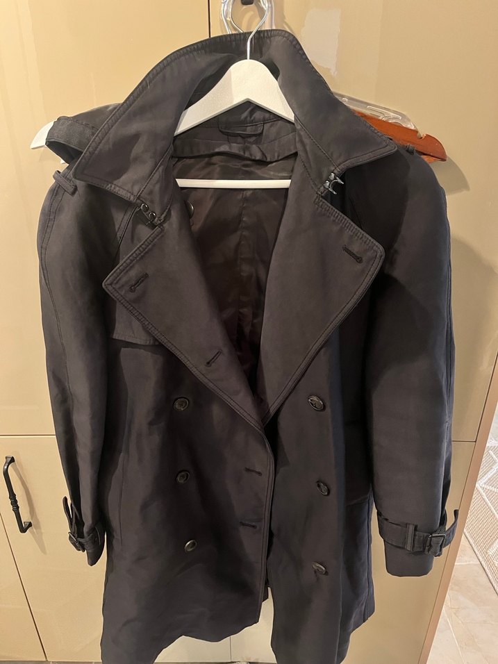siyah midi uzunlukta, düğmeli ve kesik yakalı kadın trençkot. Uzun kollu, rahat kesim ve sentetik kumaştan üretilmiştir. Günlük şık tarz için uygundur. kapitone çıkabilen yelek astarlı M ve L beden uyumlu