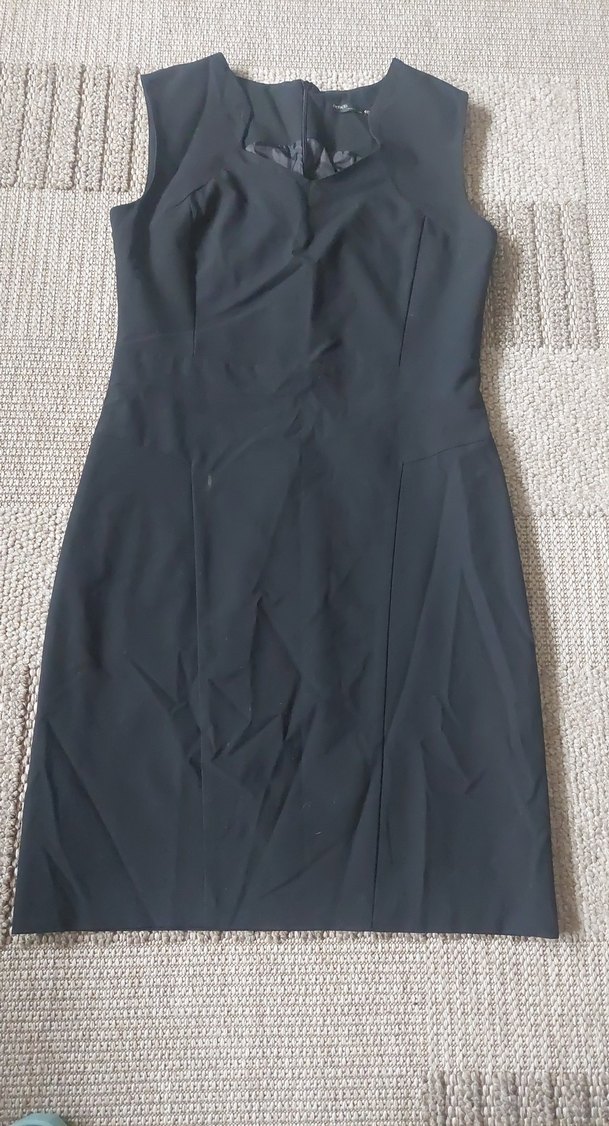 Siyah, yakalı, kolsuz ve drapeli detaylara sahip bu midi elbise, minimalist gotik tarzı için uygundur.