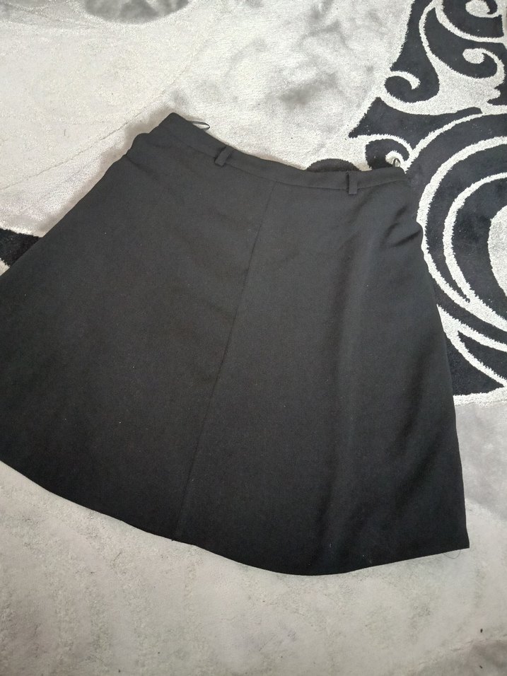 Siyah midi uzunlukta, bol kesim gotik tarzda etek. Düz desensiz ve sentetik kumaştan üretilmiştir, ofis için uygundur.