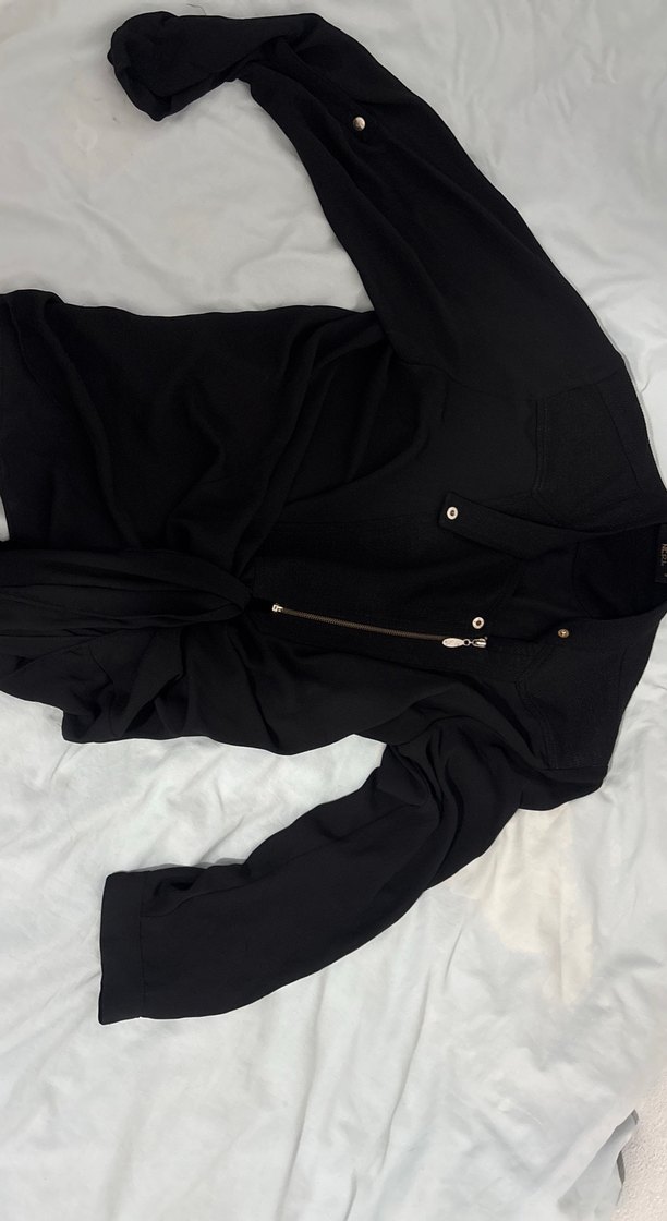 Siyah, fermuarlı, midi boy hamile ceketi, uzun kollu ve yaka detayı olan, ipeksi dokulu, günlük rahat stil için uygun. Tül gömlek önden baglamalı MLXL BEDEN UYUMLUDUR