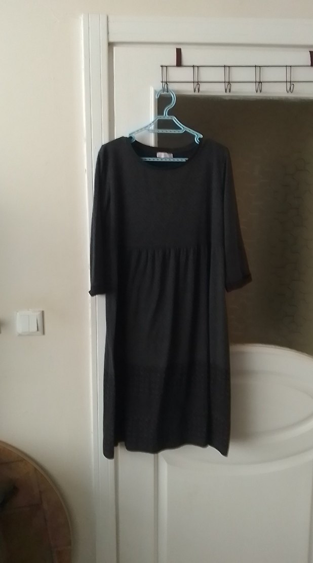 Siyah Midi Hamile Elbisesi, Kısa Kollu, Salaş