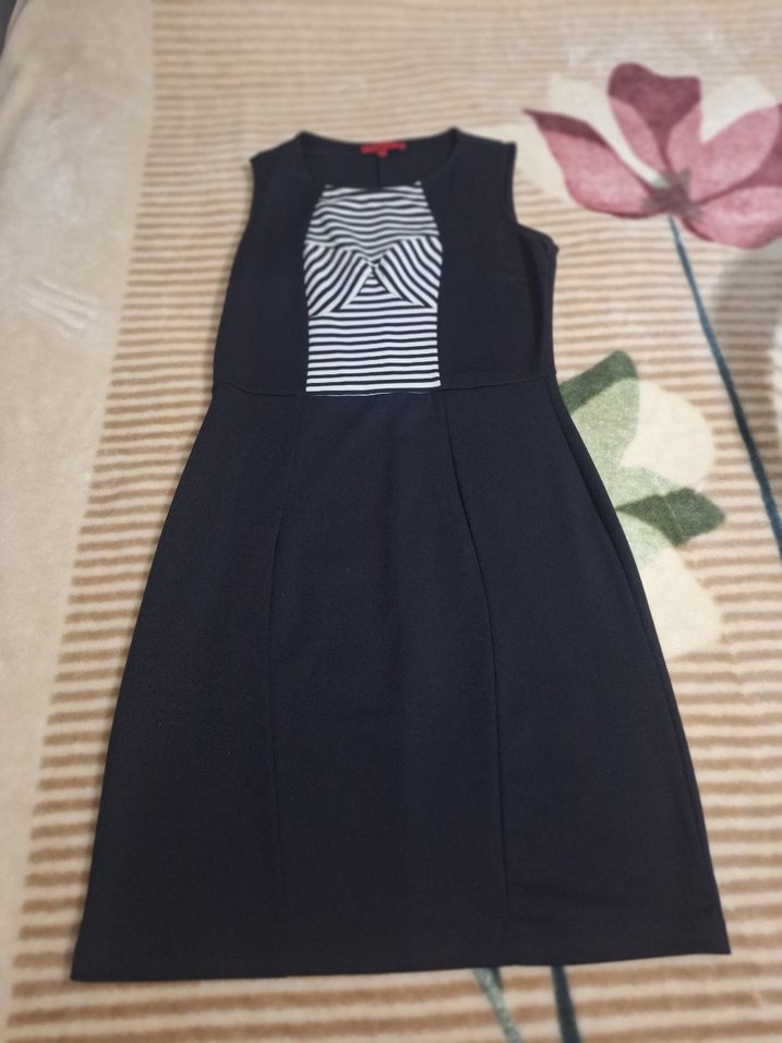 Kolsuz siyah midi hamile elbisesi, oturan kesim ve pile detaylı. Sentetik kumaştan, günlük ve iş stiline uygun. ✨