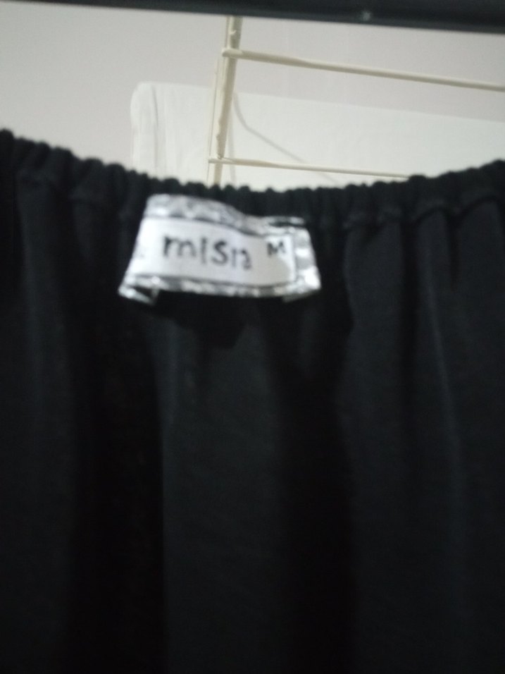 Siyah midi uzunluğunda, yırtmaçlı, bol kesim hamile eteği. İpek gibi dokulu kumaş ve baskılı desene sahip, romantik akşamlar için uygun.
