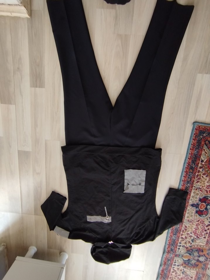 Siyah renkte, uzun kollu, yüksek yakalı, kemerli ve göğüs cepli midi hamile tulumu. Günlük kullanıma uygun, sentetik kumaştan yapılmıştır.