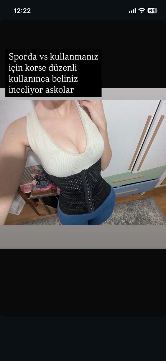Siyah renkte, normal midi boyda ve ince kesime sahip hemşire korsesi. Kullanıldığında beli şekillendirir ve askılıdır. Kanca kapanışı bulunur.