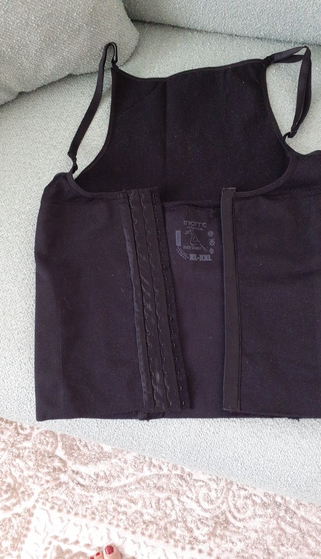 Siyah renkte, midi uzunlukta ve vücuda oturan tasarıma sahip hemşire korsesi. Ayarlanabilir askıları bulunur ve sade görünümlüdür.