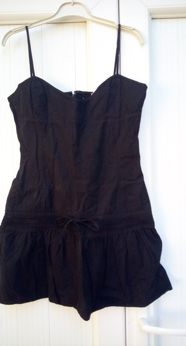 İnce askılı, siyah renkli, midi uzunlukta ve vücuda oturan düz desenli hemşire korsesi.