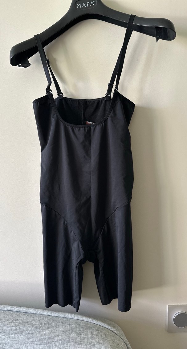 Ayarlanabilir askılı, siyah, vücuda oturan midi uzunlukta hemşire korsesi, konfor ve destek sağlar.