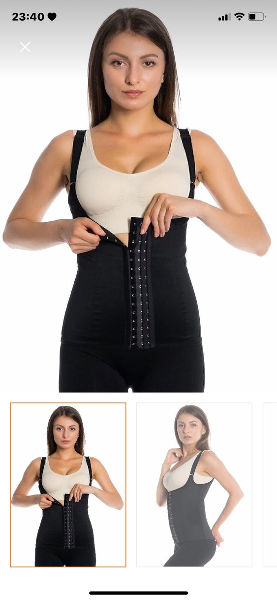 Vücuda oturan siyah midi hemşire korsesi, kancalı kapanışlıdır. Ayarlanabilir askılarla destek ve sıkılık sağlar.