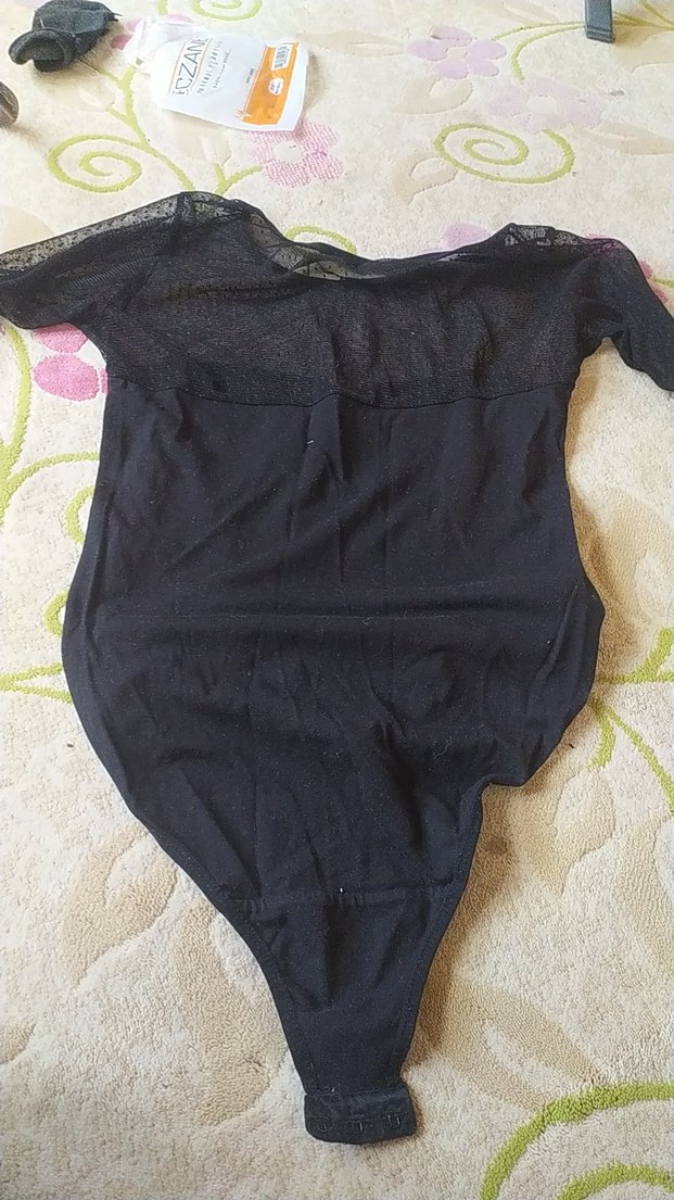 Siyah, midi boyda kadın bodysuit, şeffaf üst kısmı ve goth athleisure tarzıyla sade ve şık bir görünüm sunar.
