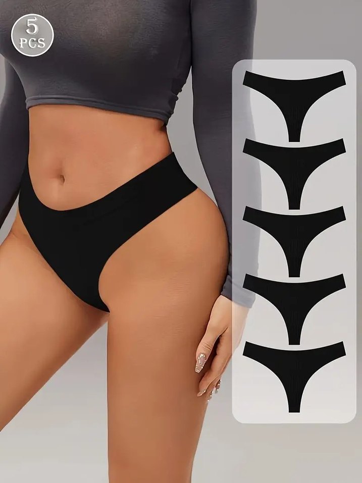 Beşli siyah midi kadın külot seti, çağdaş tasarımla ve desen olmadan, rahat ve pürüzsüz kumaştan üretilmiştir.