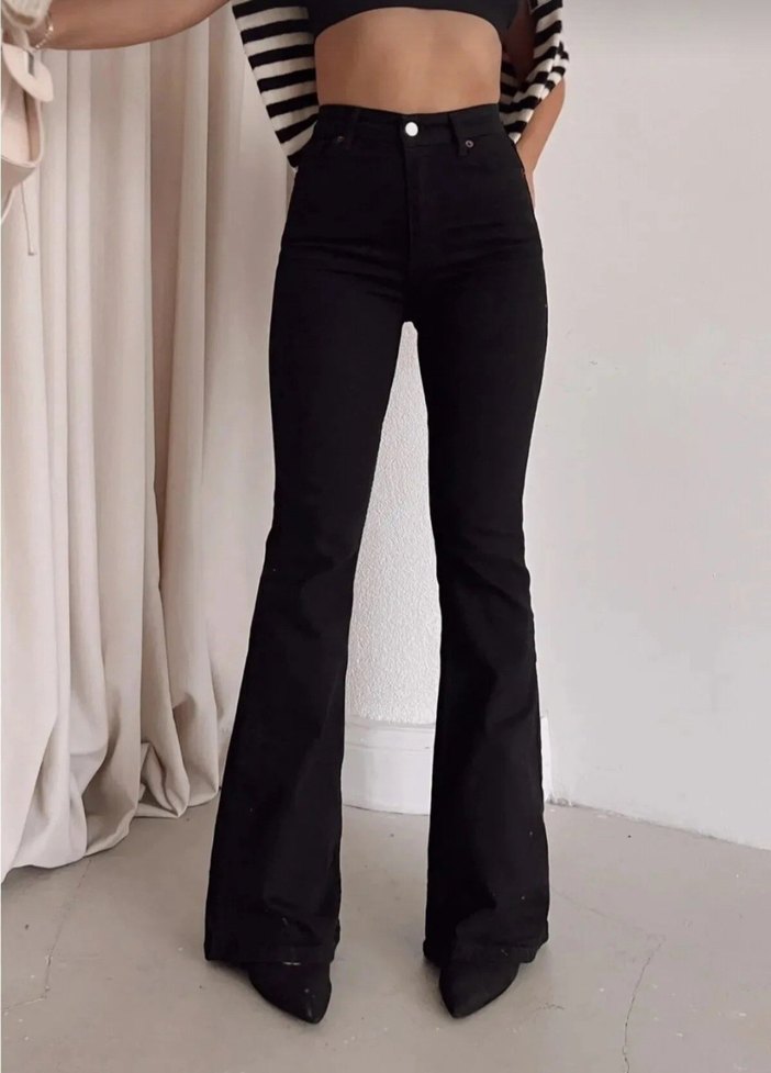 siyah ispanyol paça pantolon sorunsuz yeniden farkı yok