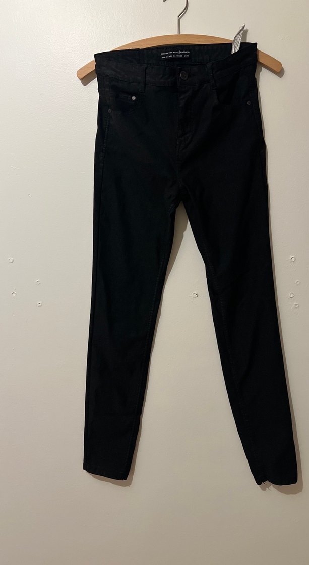Siyah, dar kesim midi uzunluğunda denim pantolon. Minimalist goth tarzıyla günlük kullanıma uygun, desen içermeyen şık ve rahat bir model.