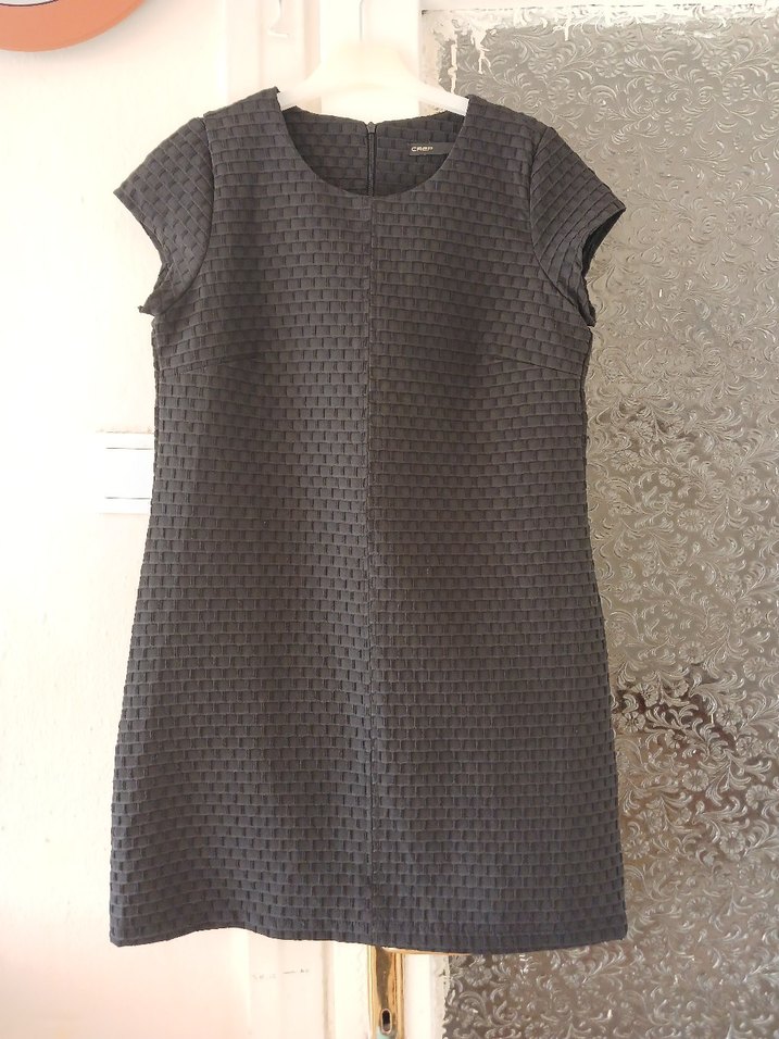 siyah kısa kollu midi elbise. Yuvarlak yaka ve dar model kesimiyle minimalist tarz sunar. Boyu 83cm beli 46cm dir. hiçbir sıkıntısı yok. ister düğün ister yemekte isterseniz günlük kullanım için uygundur.