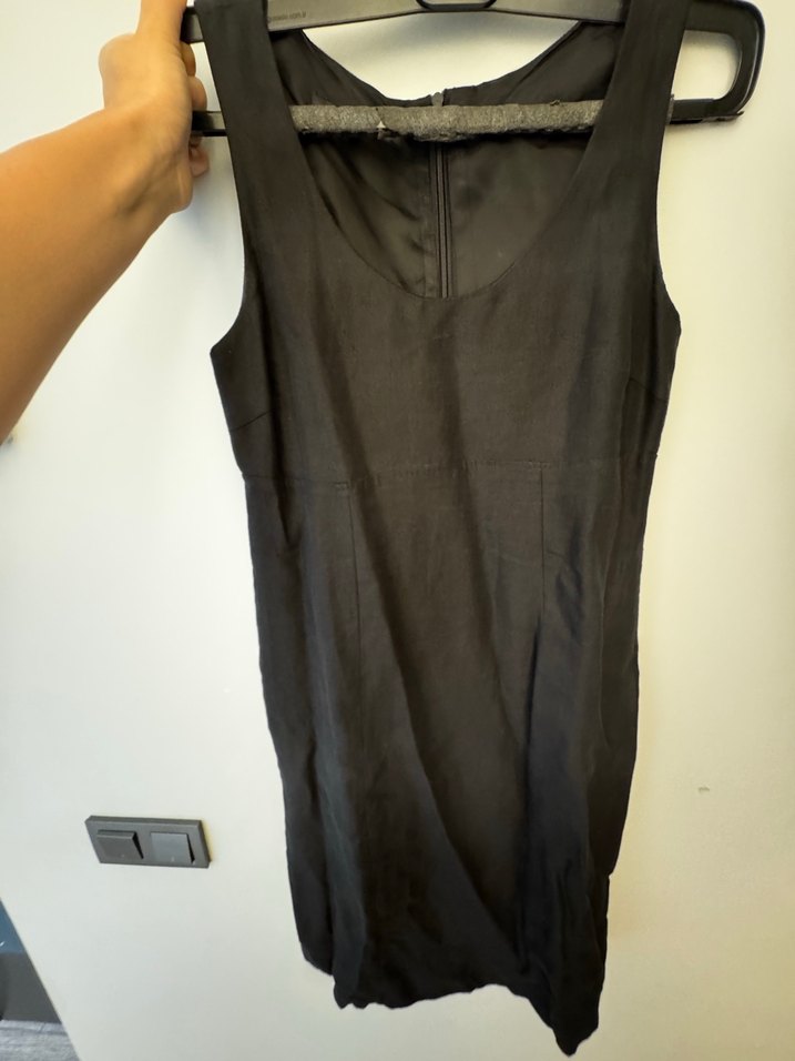 Siyah, kolsuz, midi elbise, vücuda oturan kesimiyle minimalist ve şık bir görünüm sunar. Günlük kullanıma uygun, sade ve zarif tasarım.