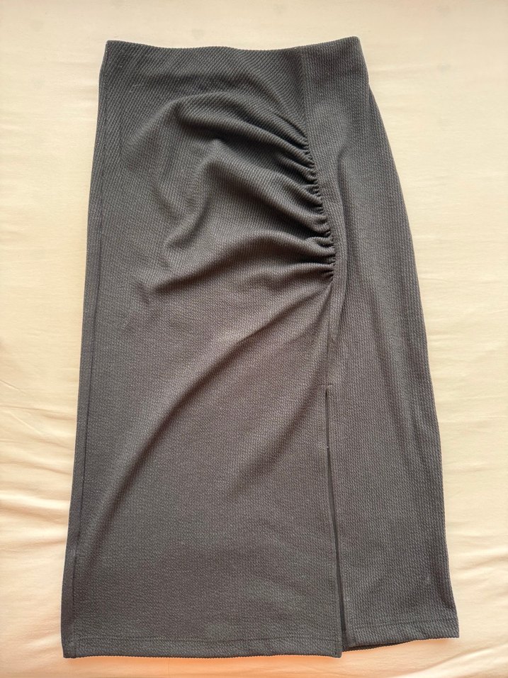Siyah midi etek, pilili detaylara ve vücuda oturan kesime sahip, yumuşak sentetik kumaştan üretilmiştir. Minimalist tasarımı gündelik şıklık için uygundur.