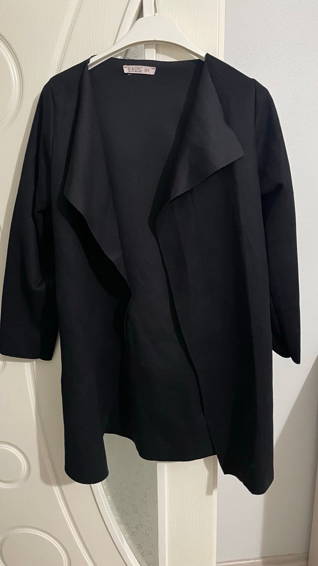 Siyah midi uzunlukta kadın kaban, yakasında kesik detay ve dökümlü tasarıma sahiptir. Uzun kollu, salaş kesim ve sentetik kumaştan üretilmiştir. Ofis için uygun, minimalist tarzda.