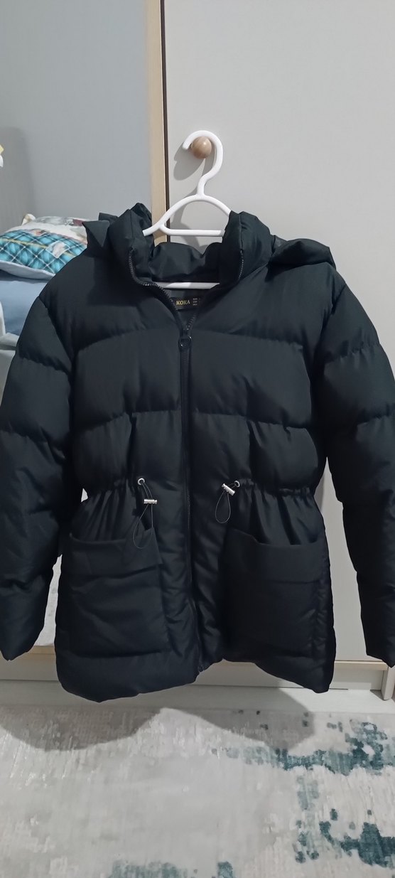 Siyah fermuarlı kadın kışlık mont, uzun kollu ve midi boydadır. Notlu yakası ve rahat kesimiyle dış mekan kullanımı için uygundur. ❄️