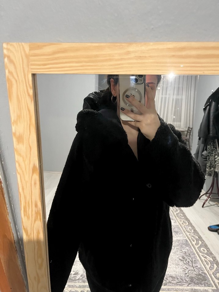Siyah, yüksek yakalı ve uzun kollu kadın kışlık mont. Yumuşak ve sıcak kumaştan, günlük kullanıma uygun şık bir sokak stili sunar. ❄️