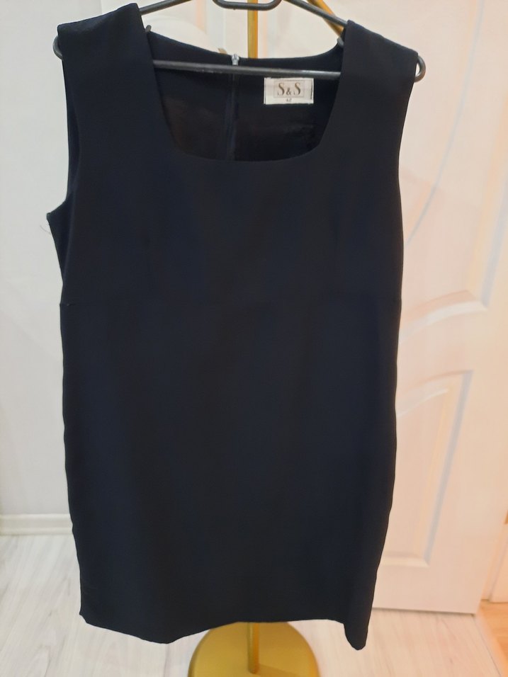 Siyah, kolsuz midi elbise , yuvarlak yaka ve regular fit. Ofis için uygun, sade ve şık