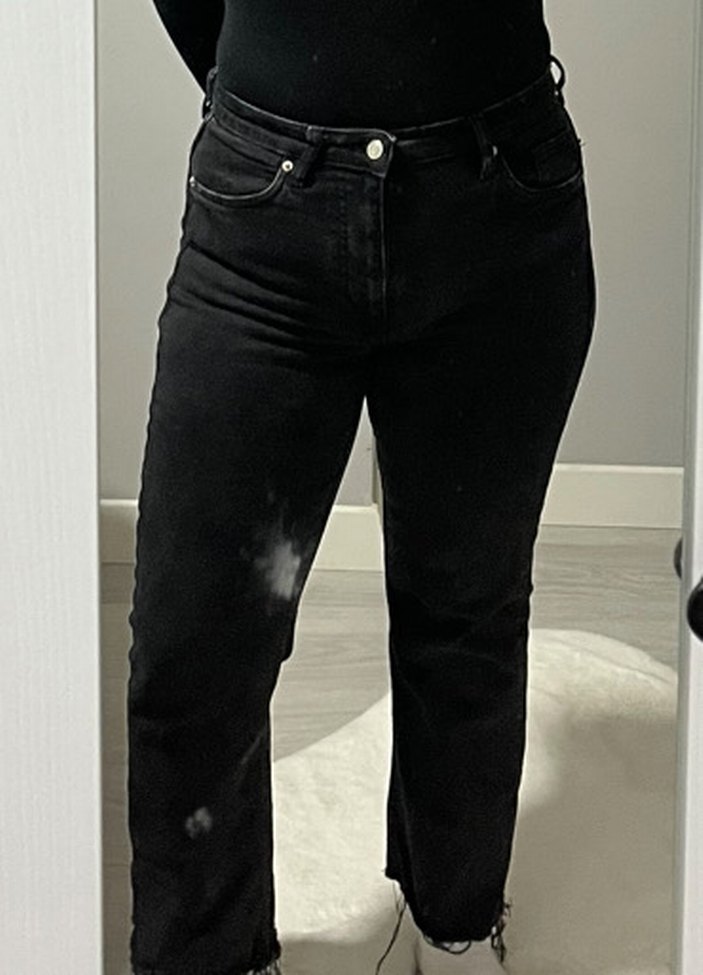 Siyah midi uzunlukta, regular fit kadın kot pantolon. Günlük kullanım için uygun, desen içermeyen ve rahat denim kumaştan üretilmiştir.