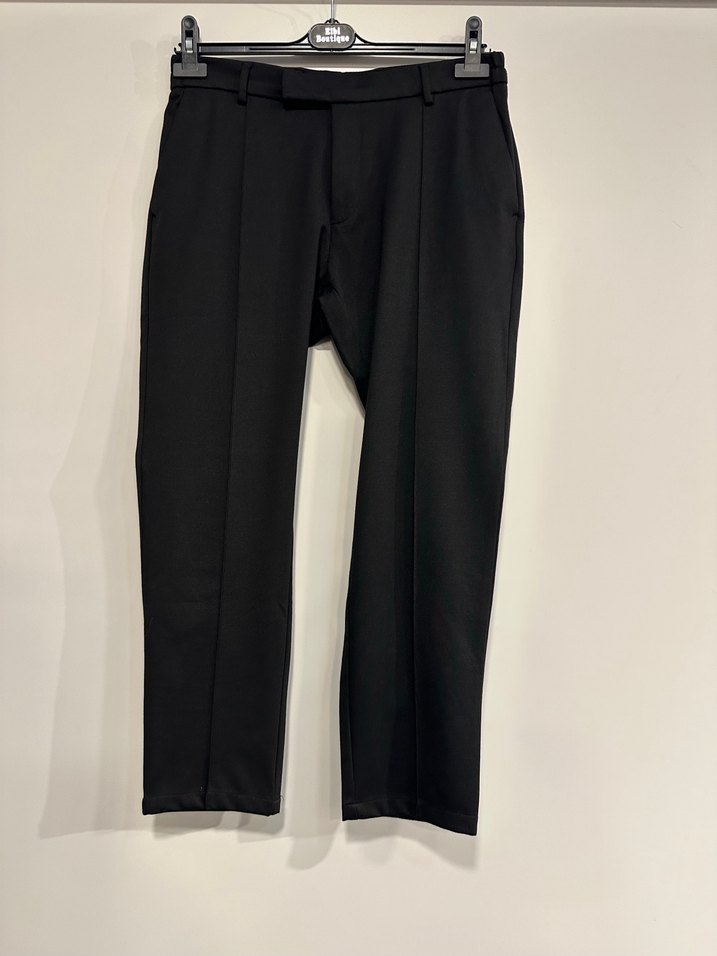 Kadınlar için siyah, sentetik kumaştan midi boy regular fit pantolon. Ofis ve spor şıklığını bir araya getiren rahat ve tarz bir model.
